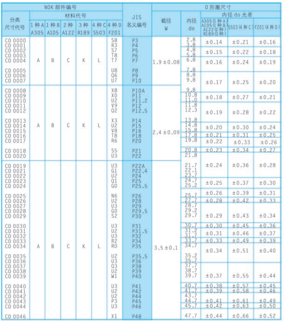 O型圈 JIS B 2401 P 系列