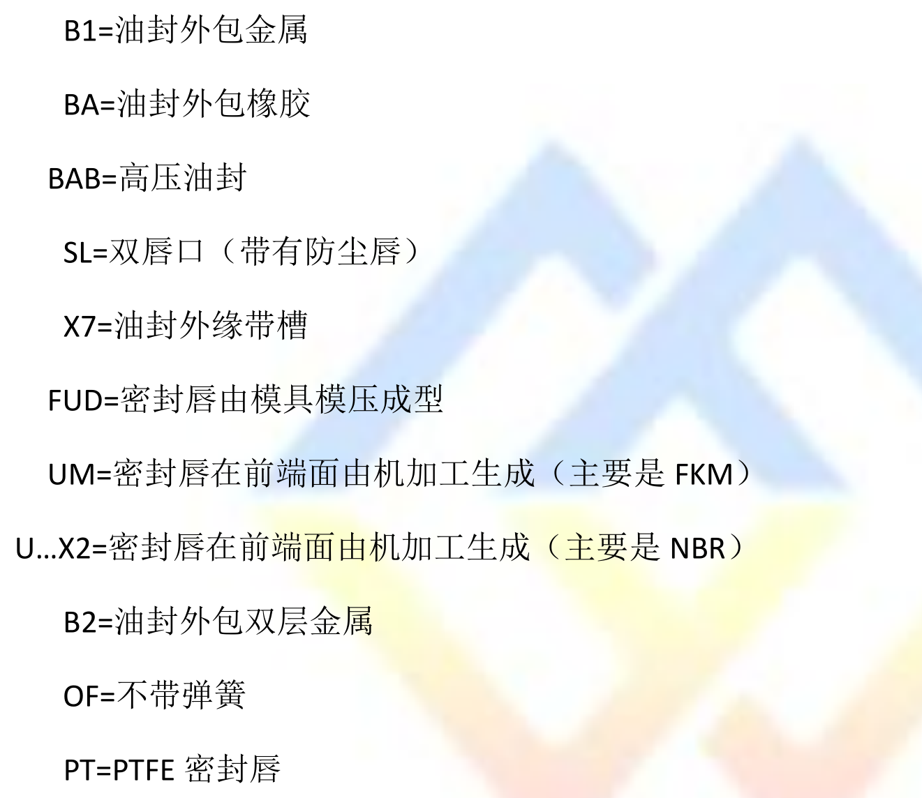 SIMRIT 油封類型標(biāo)識中代碼含義