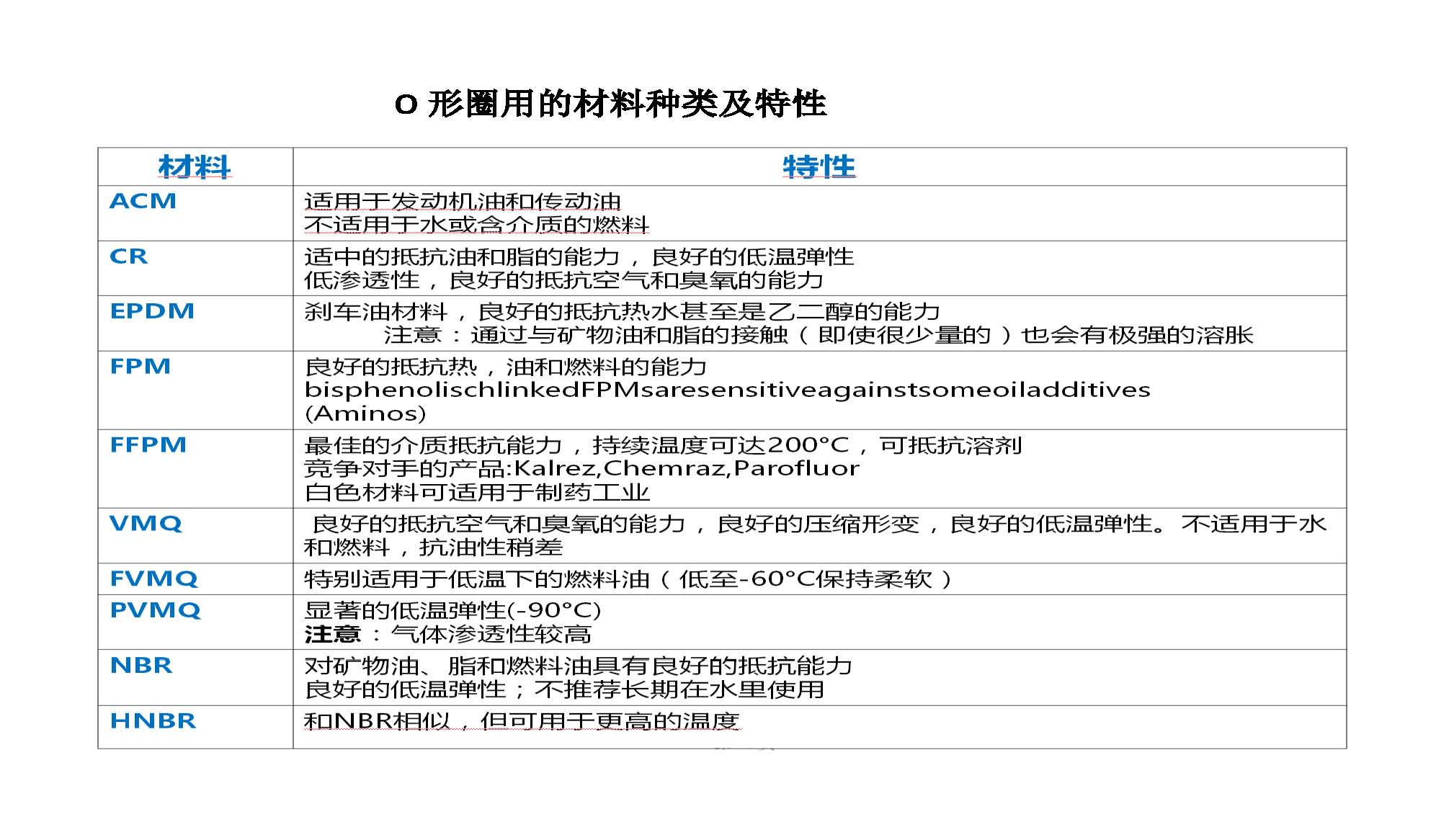 O形圈用的材料種類及特性